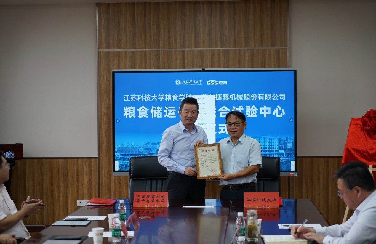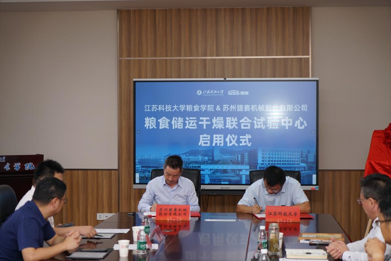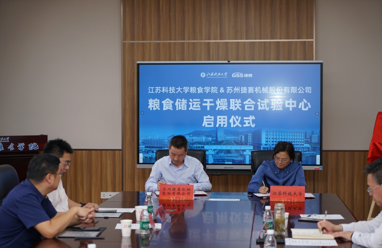 在与会嘉宾的见证下,双方签署了江苏科技大学—苏州捷赛共建粮食储运干燥联合试验中心合作协议及捐赠协议。