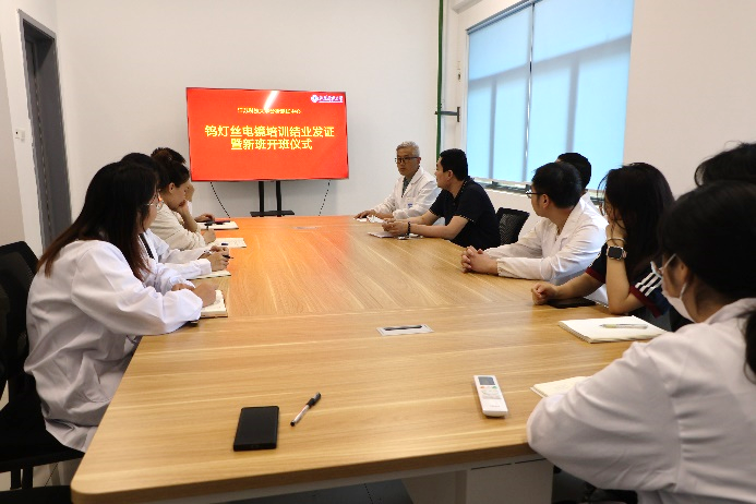 在证书颁发仪式上,杜军向顺利通过上一期钨灯丝电镜培训考核的学员代表颁发了证书,并表示祝贺。