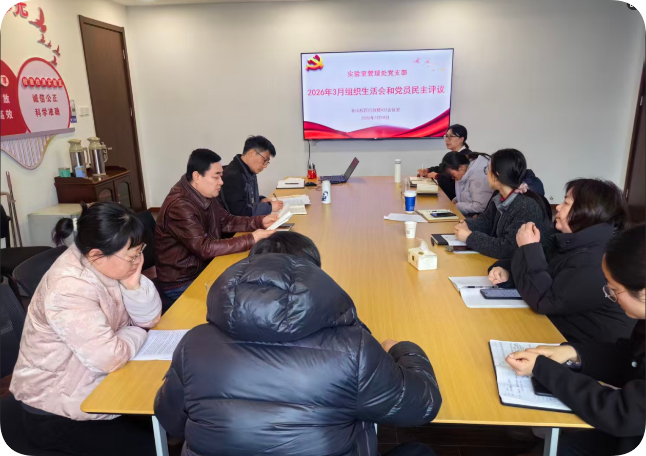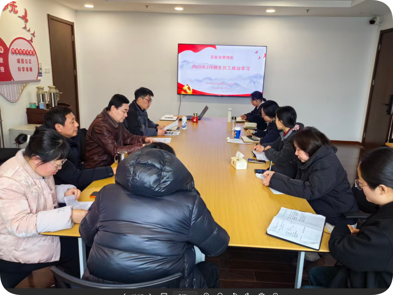 为深入开展树立和践行正确政绩观学习教育、深刻领会2026年全国两会精神,3月19日下午,实验室管理处党支部在行政楼432会议室,开展了内容丰富、实效突出的主题党日活动。活动通过动员部署、专题学习、原著研读、检视剖析等环节,引导党员在“十五五”开局之年进一步统一思想、凝聚共识、担当作为。会议坚持落实“第一议题”制度,由党支部书记沈勇主持。